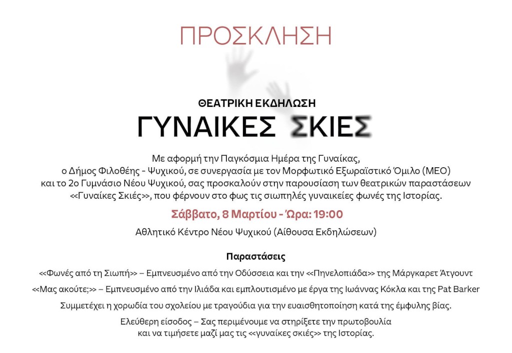 Μέσα από τη δύναμη του θεάτρου, η θεατρική ομάδα του 2ου Γυμνασίου Νέου Ψυχικού «Γρηγόριος Ξενόπουλος», μας προσκαλεί σε μια παράσταση που δεν αφήνει χώρο στη σιωπή.