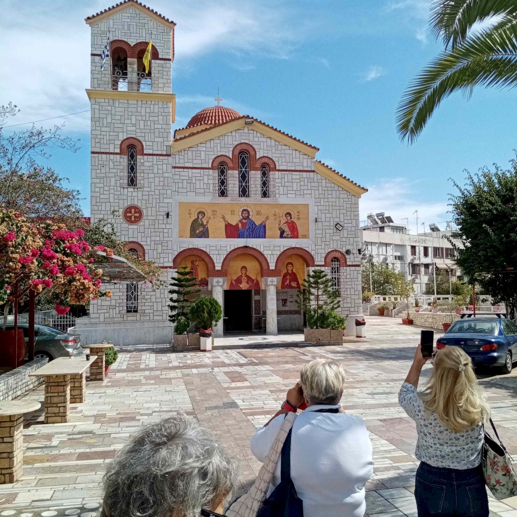 Η περιήγηση συνεχίστηκε στη γειτονιά της Κρεμυδαρούς, όπου ανακαλύψαμε τα προσφυγικά σπίτια που κάποτε ήταν τόσο πυκνοκατοικημένα, που δεν μπορούσες να ανοίξεις τα χέρια σου για να περάσεις ανάμεσά τους. Στη συνέχεια, περάσαμε από την εκκλησία του Αγίου Φανουρίου και περπατήσαμε στον δρόμο που οδηγεί πάνω από το λιμάνι, διακρίνοντας στο βάθος το φουγάρο από τα Λιπάσματα.