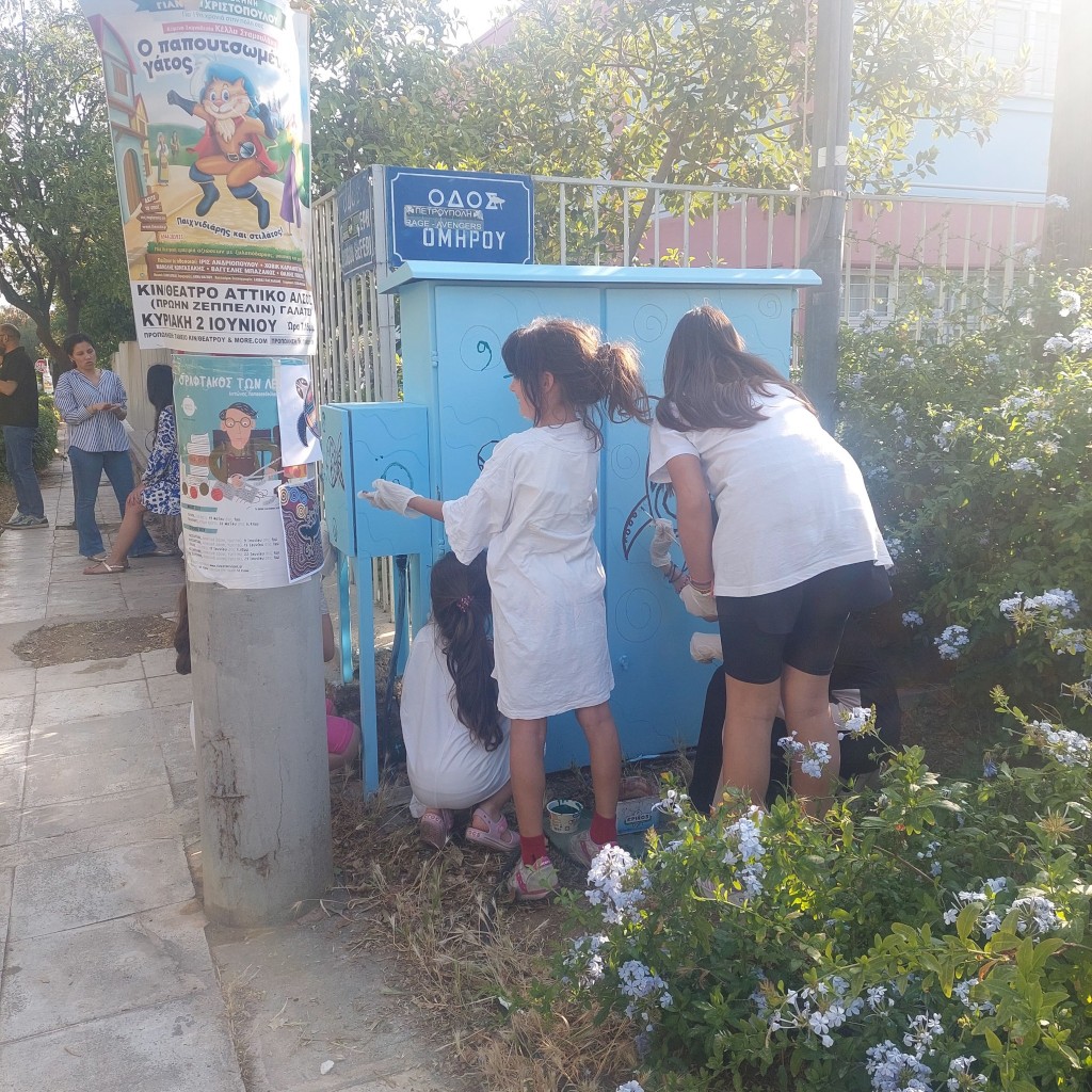 Τα μικρά μας ΜΕΟπουλασε ..δράση!Οι λιλιπούτειοι μαθητές του καλλιτεχνικού τμήματος του Ομίλου ομόρφυναν ένα κομμάτι της Οδού Σεφέρη στο πλαίσιο "εξωραίζω τη γειτονιά μου"